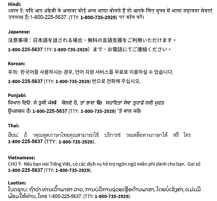 - Provides free language services to people whose primary language is not English, such as:
